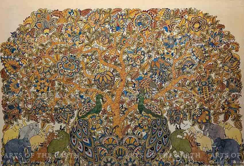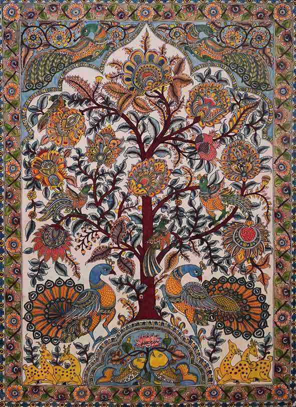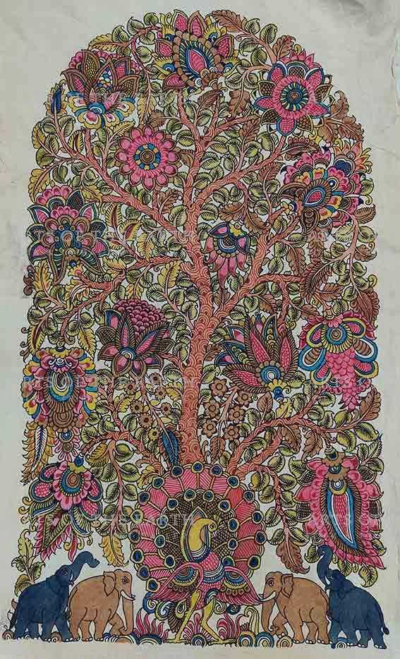 Harinath is a Kalamkari artist from Srikalahasti, holy town in Chittoor district. He has been doing this traditional art of Kalamkari from 35 years and has received many awards for the same. His Kalamkari artworks recite the stories of Tree of Life, Indian God and Indian mythology.